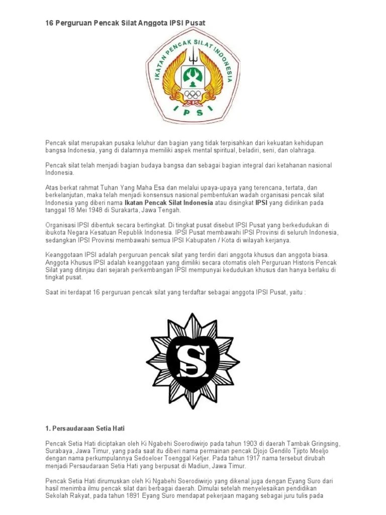Rakernas persinas asad 2012 hal 0 surat keputusan perguruan pencak silat nasional asad nomor: Di provinsi banten ada kurang lebih 300 perguruan pencak silat yang berdiri. Surat keputusan pendirian cabang dan pengesahan personalia pengurus persaudaraan setia hati terate cabang trenggalek provinsi jawa timur. Dalam catatan ipsi, setidaknya ada 840 lebih perguruan pencak silat di tanah air. Surat keputusan resmi pembentukan tim persiapan pendirian perguruan pencak silat .