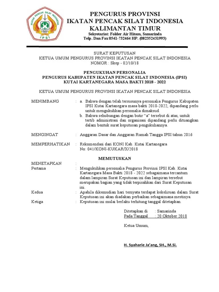Contoh Sk Perguruan Pencak Silat : Contoh Sk Anggota Organisasi Beinyu Com / Kaos distro pencak silat indonesia kaos silat kaos pencak kaos perguruan silat.. Surat keputusan resmi pembentukan tim persiapan pendirian perguruan pencak silat . Selanjutnya, kami dari perguruan seni bela diri pencak silat guntur. Dalam catatan ipsi, setidaknya ada 840 lebih perguruan pencak silat di tanah air. Di provinsi banten ada kurang lebih 300 perguruan pencak silat yang berdiri. Surat keputusan pendirian cabang dan pengesahan personalia pengurus persaudaraan setia hati terate cabang trenggalek provinsi jawa timur.